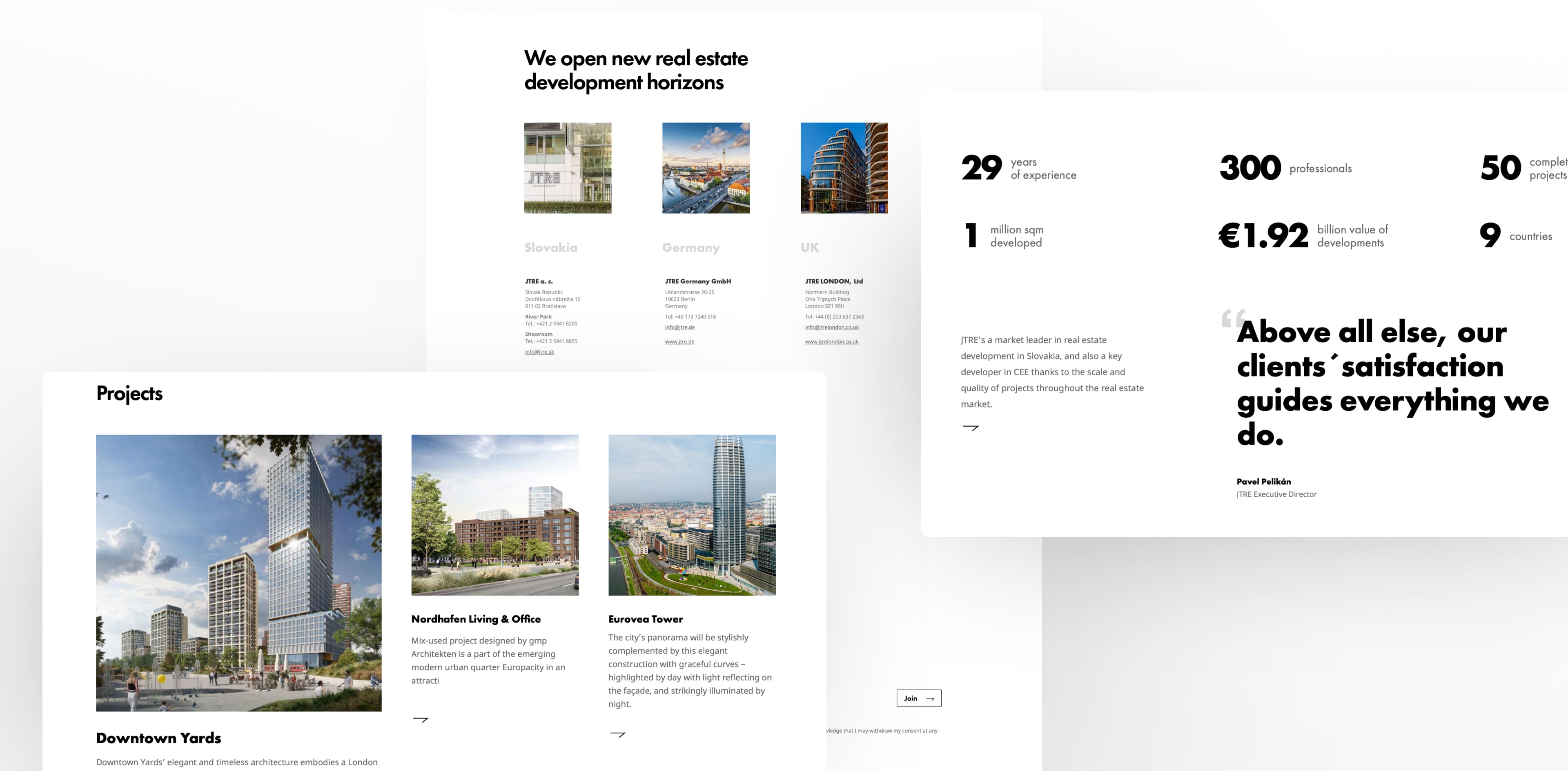 Over the years of collaboration, we designed and developed 13 web projects for JTRE. We also managed their Mailchimp newsletter campaigns for a period of time and continue to operate, maintain, and support their project websites with ongoing SLA support.