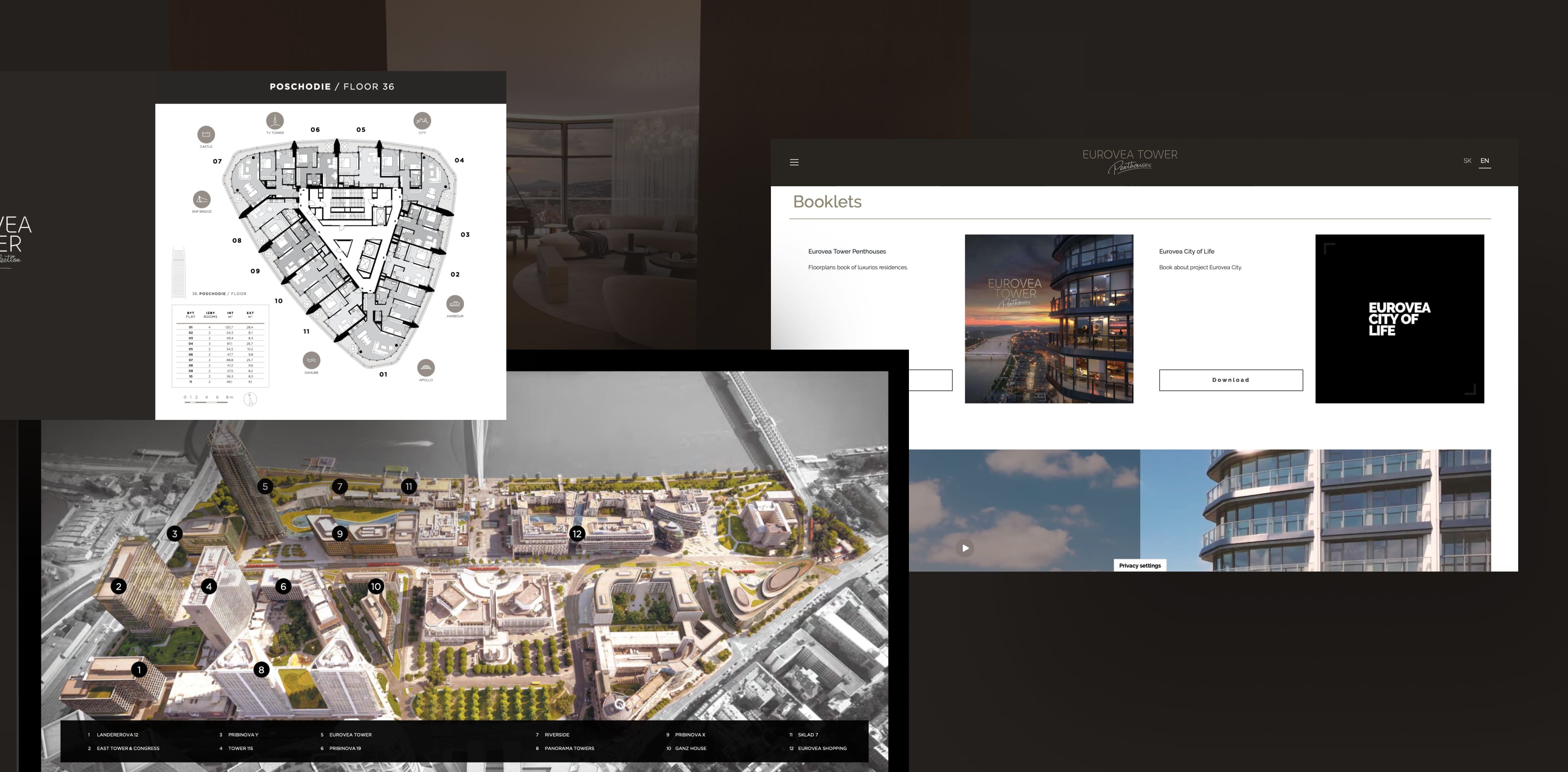 The whole design of the web portal was designed to capture the specs of the project - its height and unique visuals, which will attract attention from a distance. The easy navigation guides the visitor through all the project information and thus gives him/her a complete overview of Eurovea Tower.